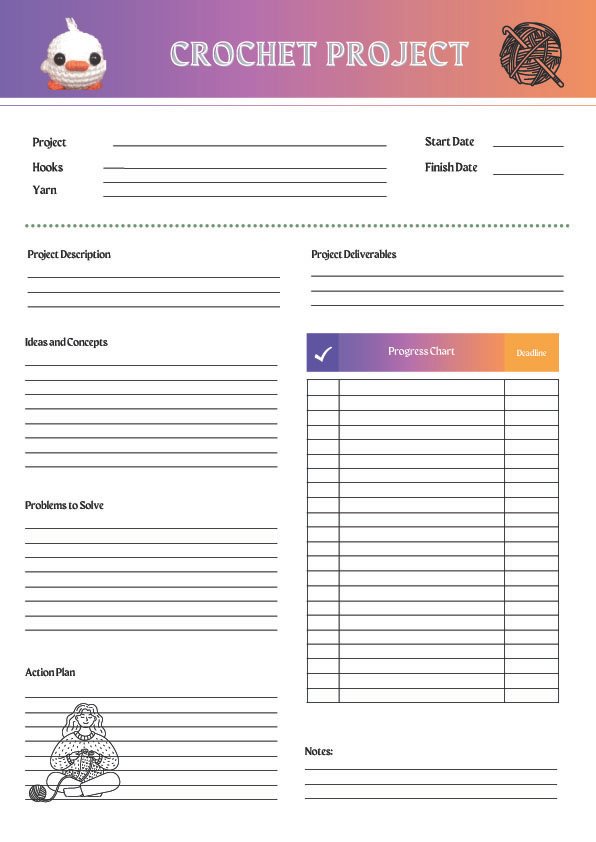 Simple Crochet Project plan single page. Perfect for starting out on a new crochet project.