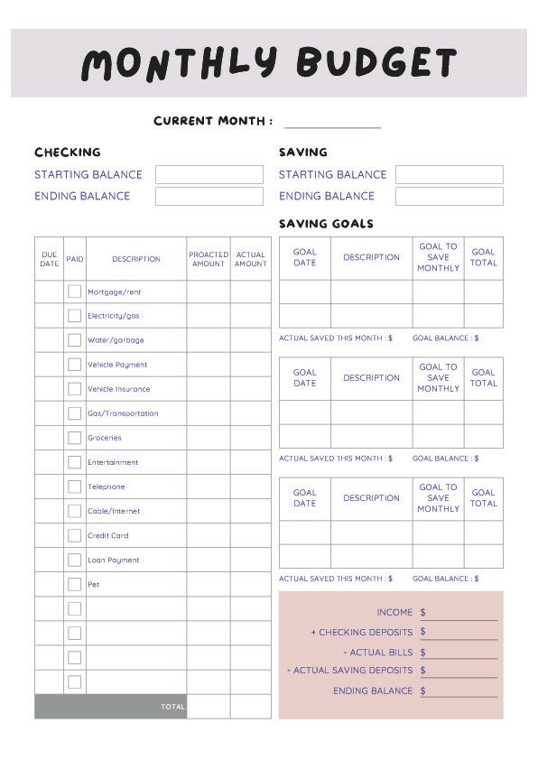 Simply print or use digitally to plan each month, monitor spending, and take control of your finances.