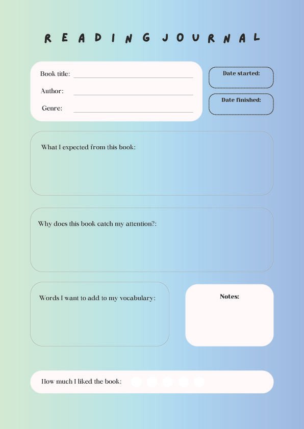Whether you’re exploring new genres or revisiting old favorites, this downloadable journal helps you stay organized, inspired, and mindful of your reading journey throughout the year.