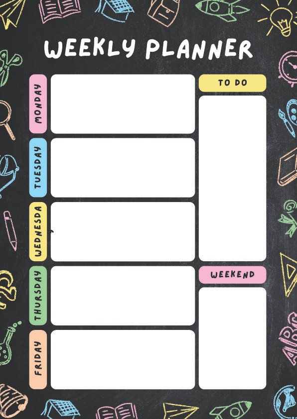 Set your Schedule for the whole week! Blackboard Style planner makes everything easy to spot.